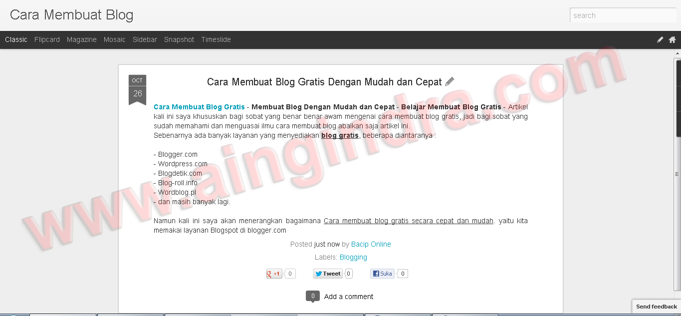 12. Gambar dibawah ini merupakan contoh artikel yang sudah berhasil diterbitkan. dan untuk melihat artikelnya silahkan klik tombol view. selesai.... nah mudah bukan ?